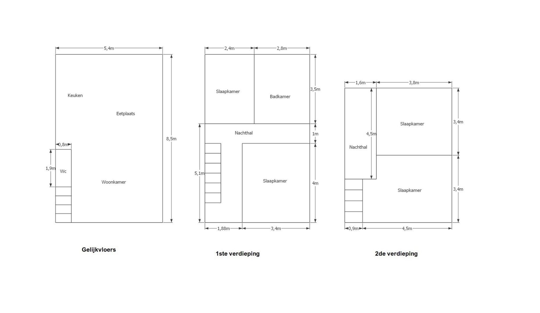 De 2e verdieping, bereikbaar via vaste trap, biedt plaats aan 2 extra slaapkamers.