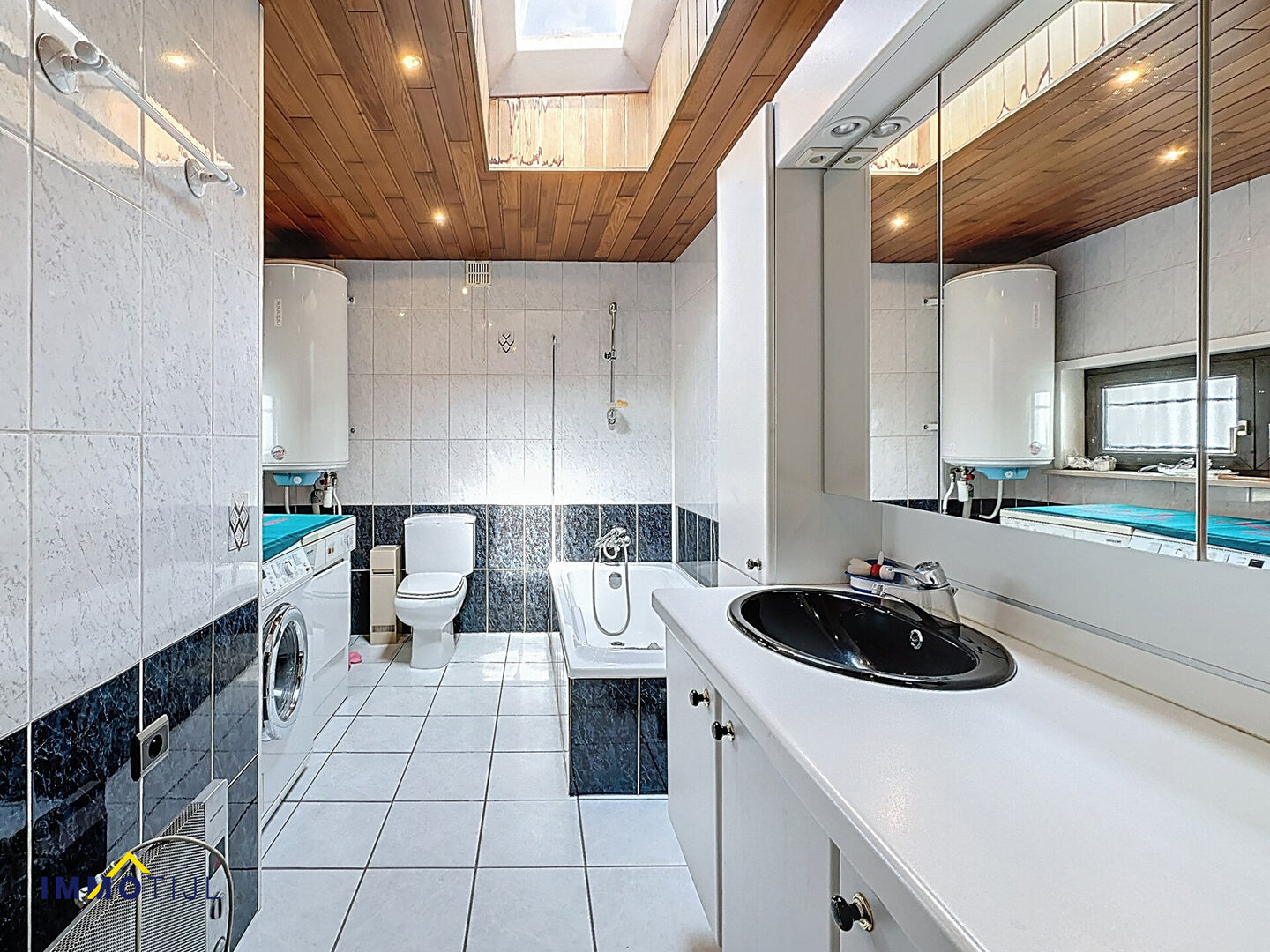 Op de eerste verdieping bevindt zich de masterbedroom, 2 kleinere (slaap)kamers en een bureau. Een praktische zolder (bereikbaar via een valluik) biedt extra mogelijkheden op vlak van uitbreiding of stockage. Er is tevens een handige kelder, ideaal of als opbergruimte.