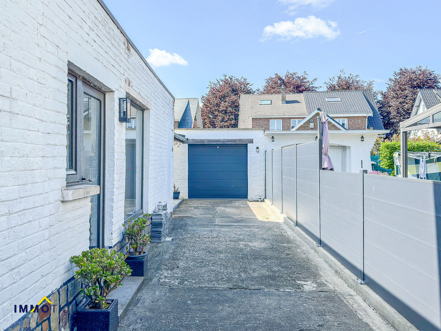 Een extra troef is de ruime oprit (plaats voor meerdere wagens) met aansluitend de garage met automatische poort.
