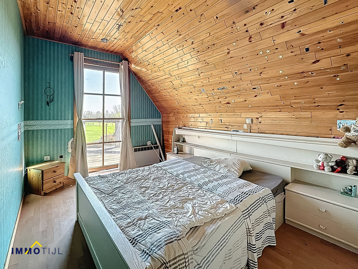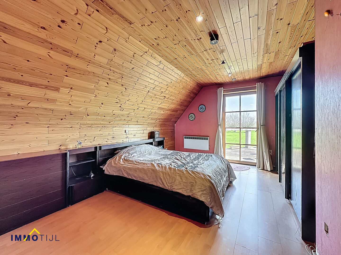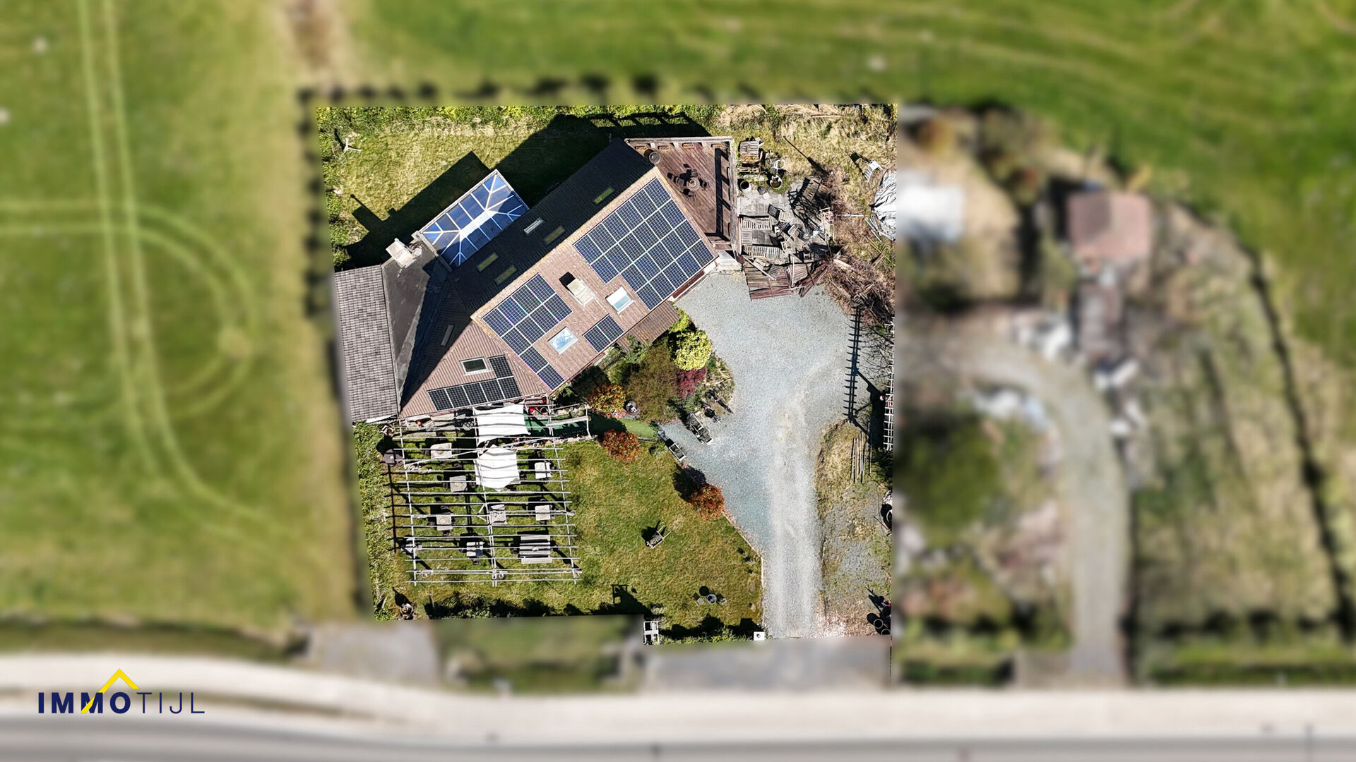 Achter de woning strekt zich een prachtig groen landschap uit, met weidse zichten over de omliggende velden. Op het terras aansluitend aan de masterbedroom geniet je in alle rust van dit uniek uitzicht. Ondanks de ligging aan deze verbindingsweg, biedt het perceel achteraan net die oase van rust en openheid die zelden te vinden is.