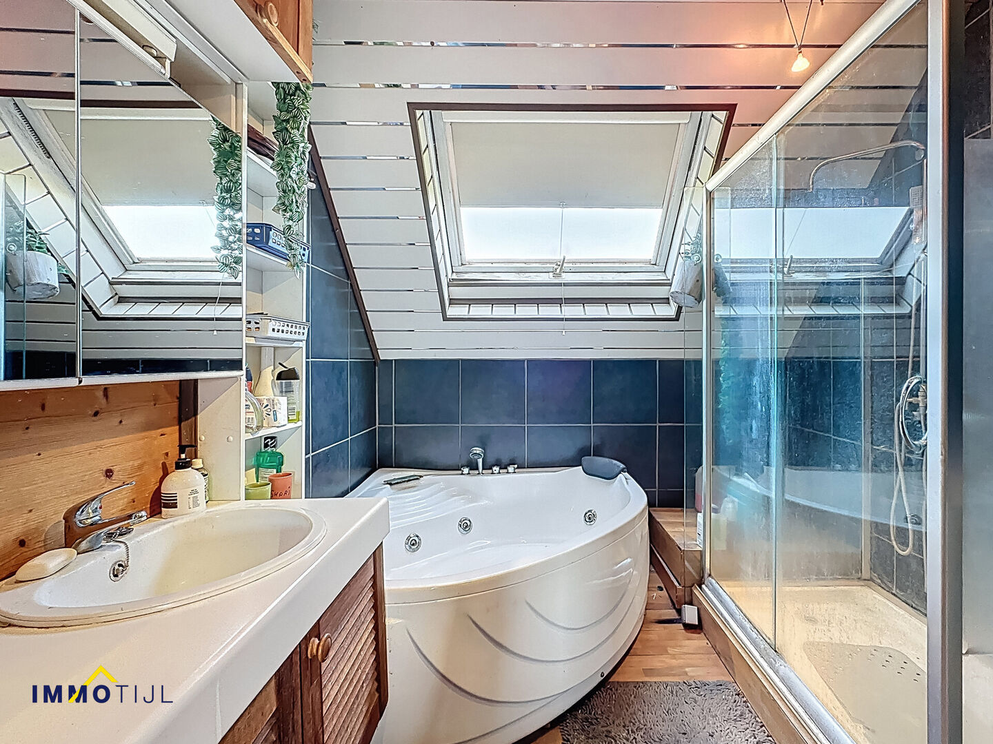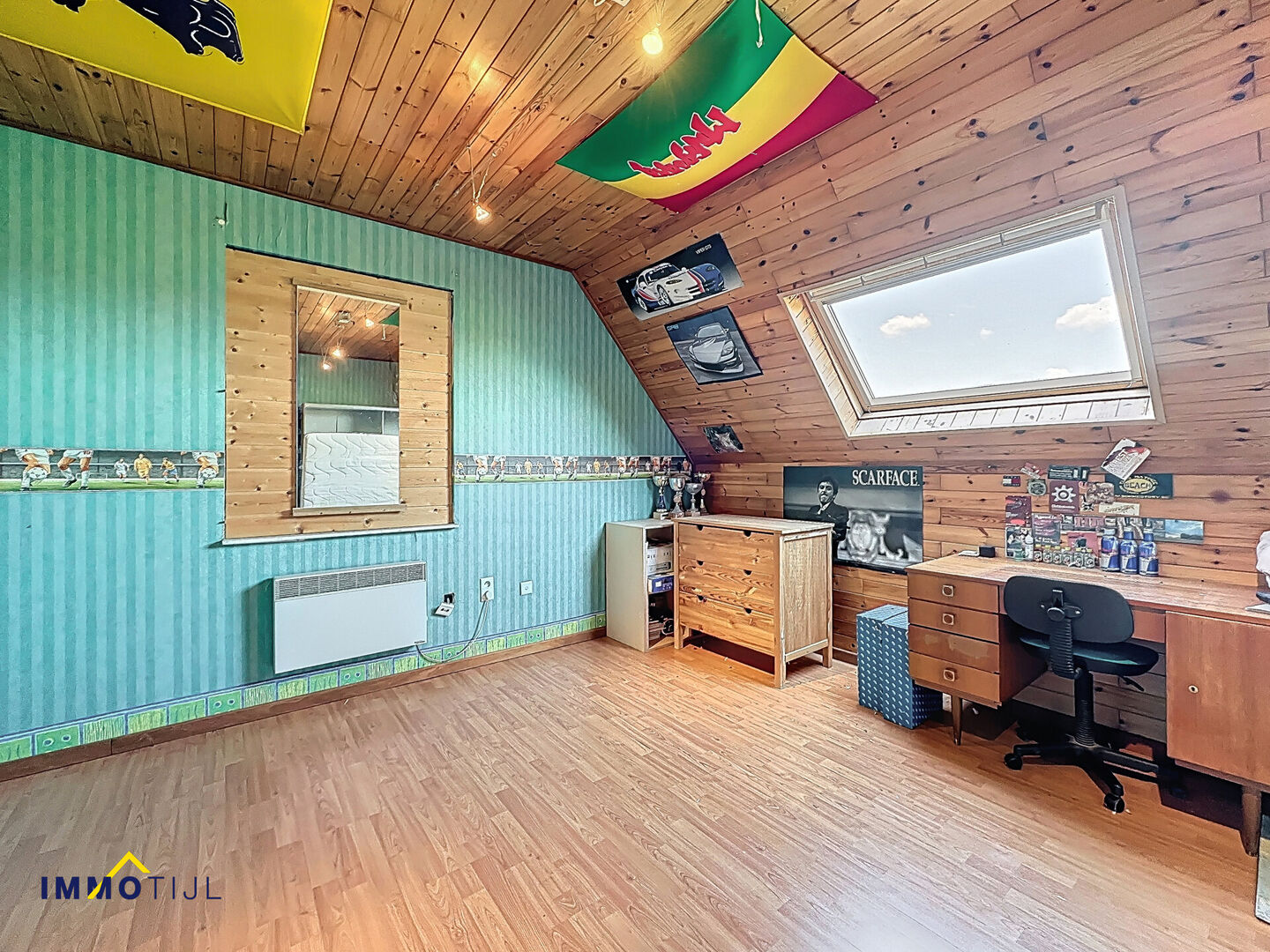 De woning beschikt op het gelijkvloers over een inkomhal met gastentoilet, een lichtrijke woonkamer met eetplaats, ingerichte keuken, een handige berging met douche en een inpandige garage. Een extra troef is de polyvalente ruimte met aparte inkom en sanitair. Deze ruimte wordt momenteel uitgebaat als tijdelijk pop-up café en leent zich perfect voor vrije beroepen, creatieve projecten of een commerciële invulling, mits naleving van de geldende regelgeving. Op de verdieping vindt men 4 slaapkamers en een badkamer (hoekbad, douche en lavabomeubel). Er is tevens een zolder aanwezig die nog extra uitbreidingsmogelijkheden biedt.