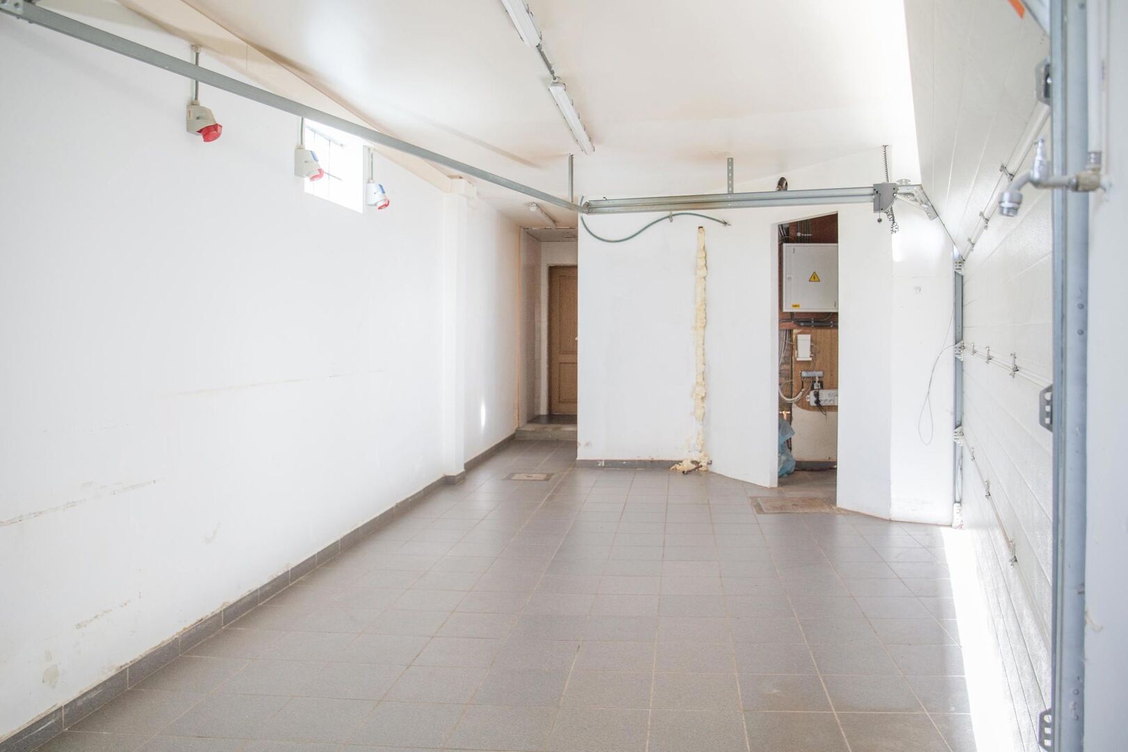Het gelijkvloerse pand beschikt over een grote garage met ingang langs de Verbindingsstraat. Indeling: polyvalente ruimte (kantoor, winkel, etalage), achteraan berging en garage met automatische poort. Tevens apart toilet en droge kelder aanwezig.