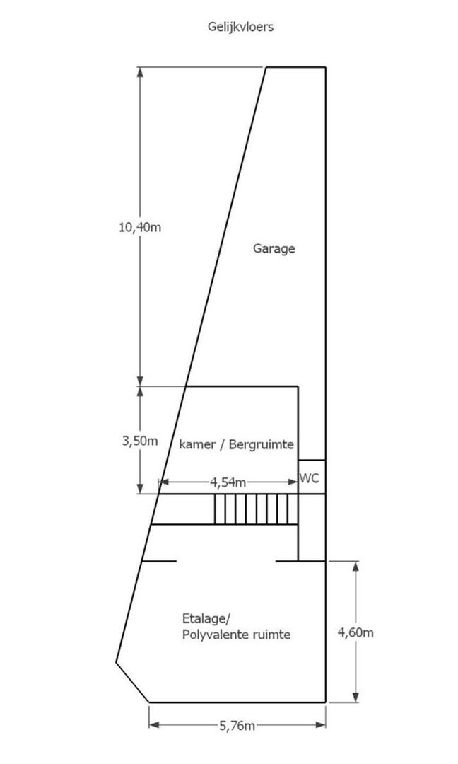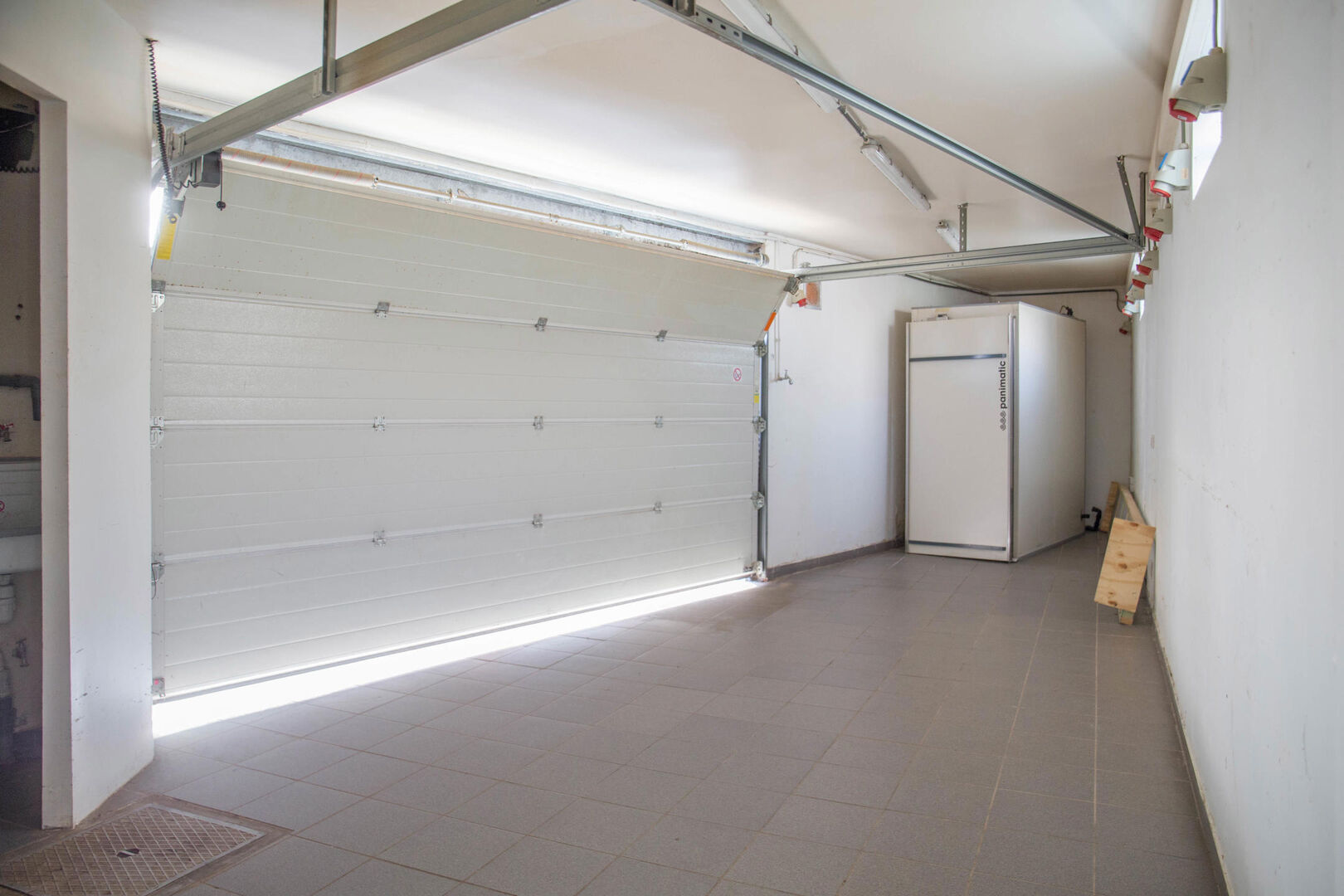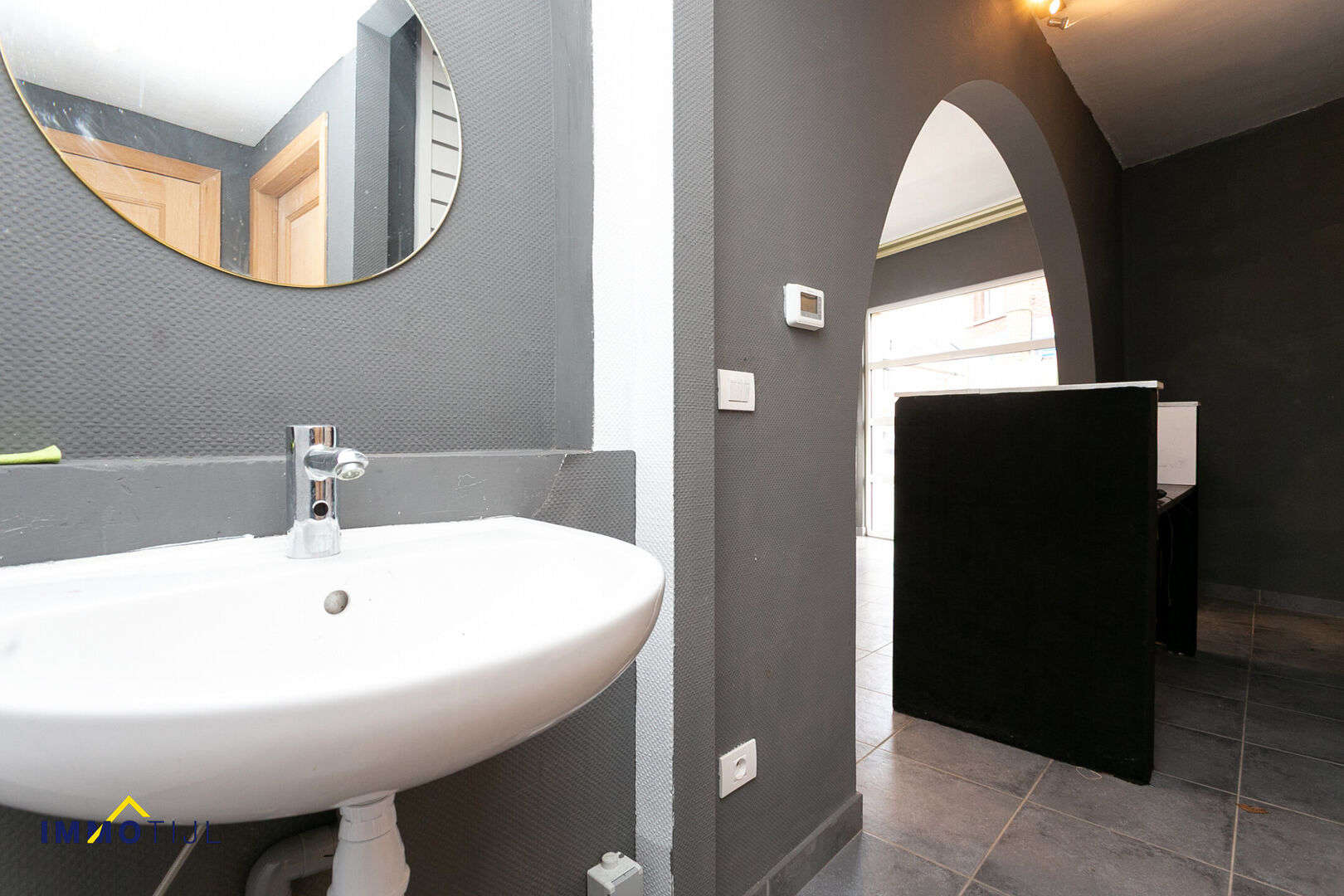 Het gelijkvloerse pand beschikt over een grote garage met ingang langs de Verbindingsstraat. Indeling: polyvalente ruimte (kantoor, winkel, etalage), achteraan berging en garage met automatische poort. Tevens apart toilet en droge kelder aanwezig.