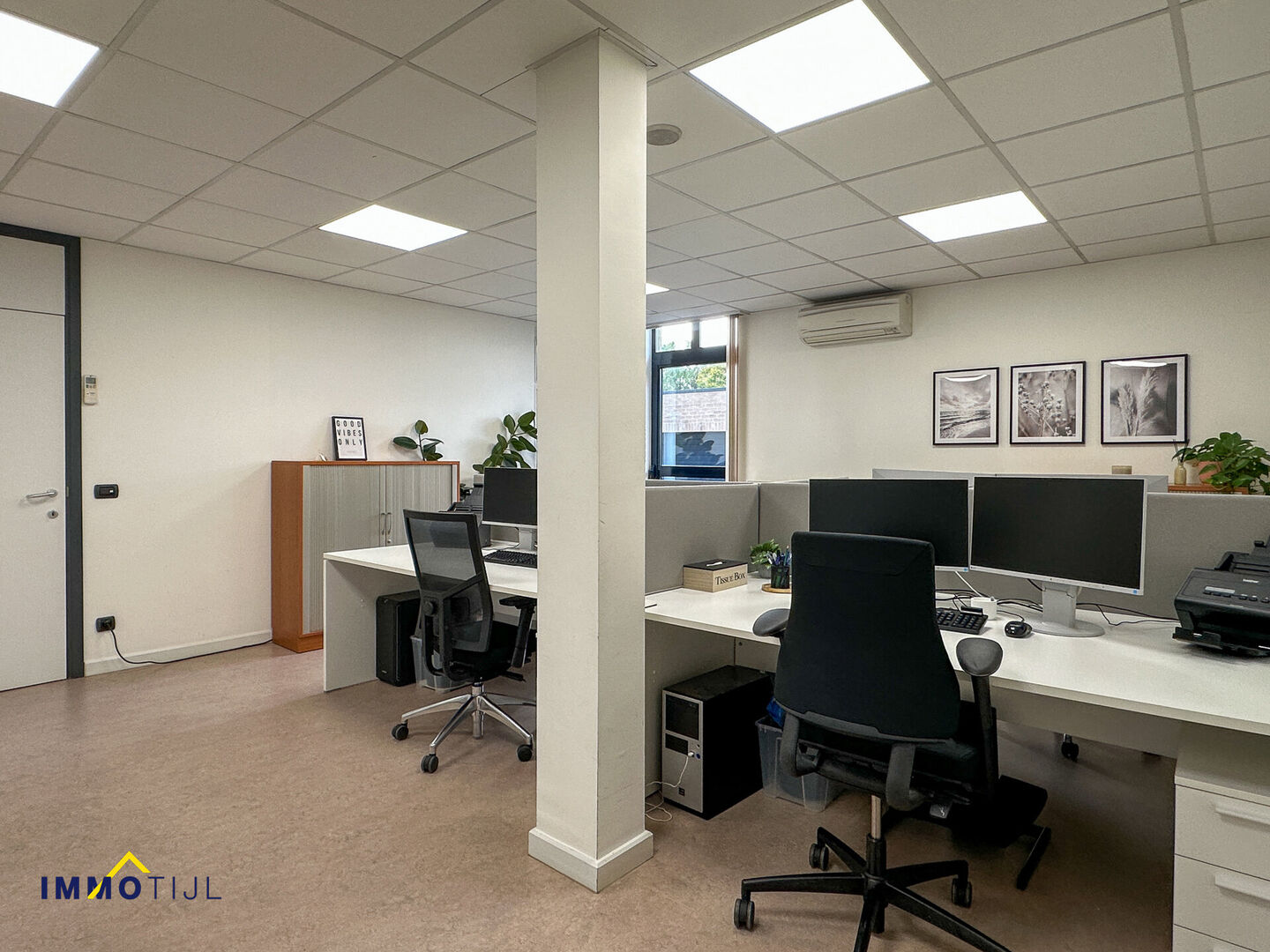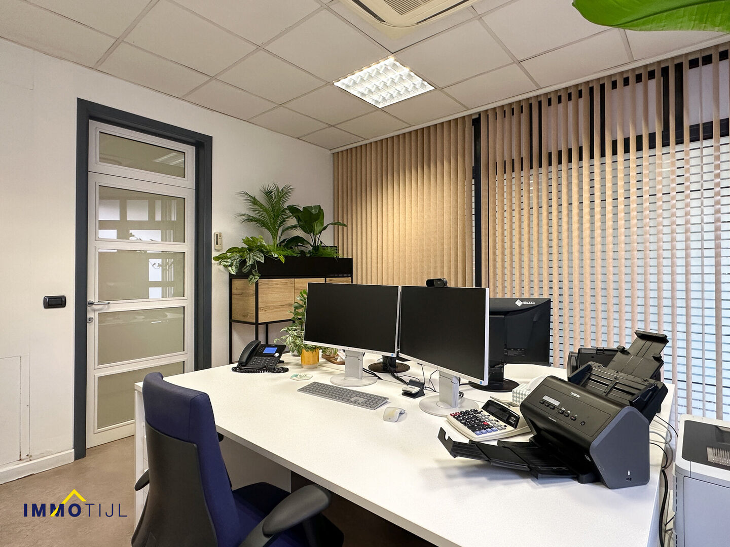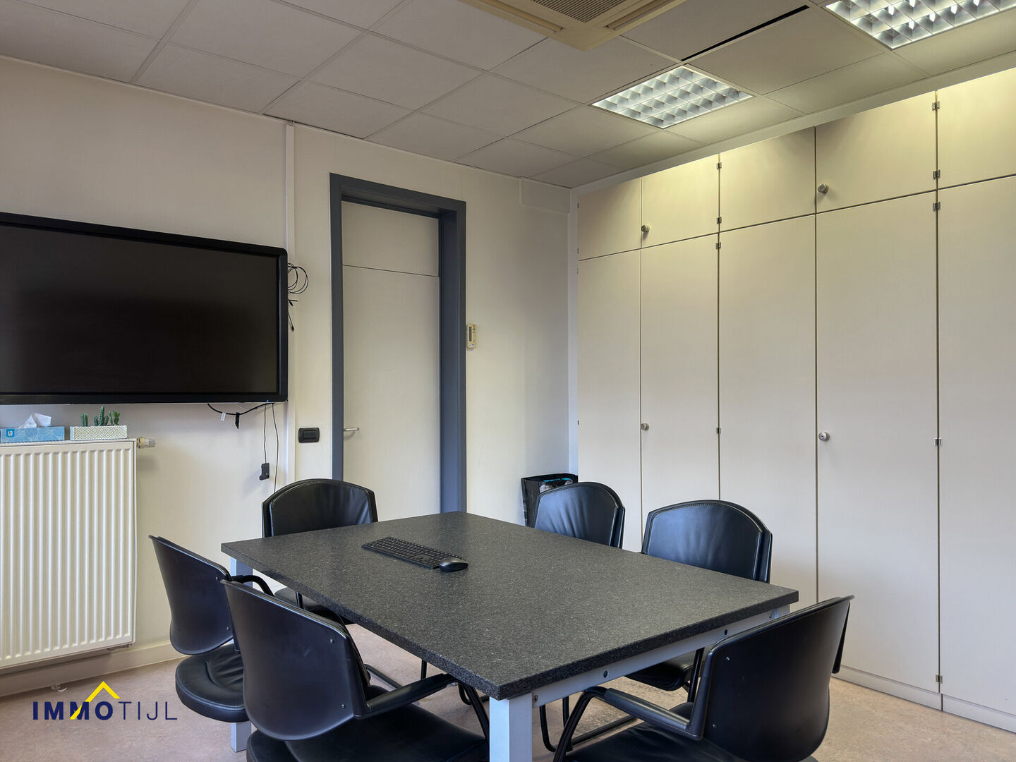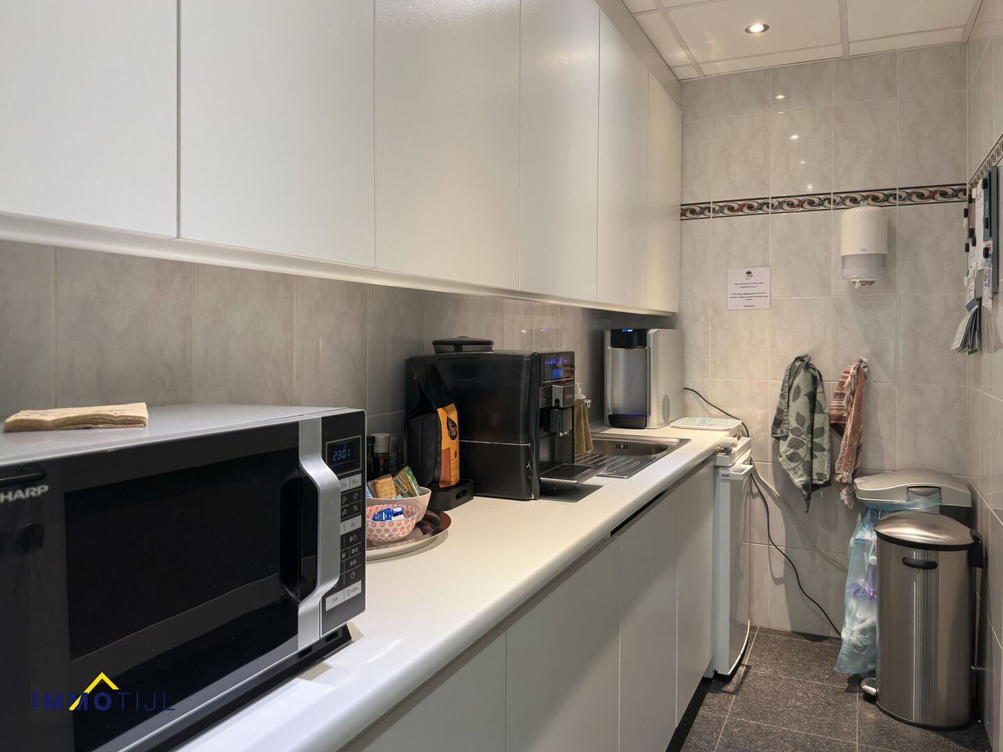 Daarnaast is er een praktische keuken en zijn er twee afzonderlijke toiletten. Dankzij de aangename lichtinval en de verzorgde afwerking is dit een ideale werkplek voor diverse professionele activiteiten.