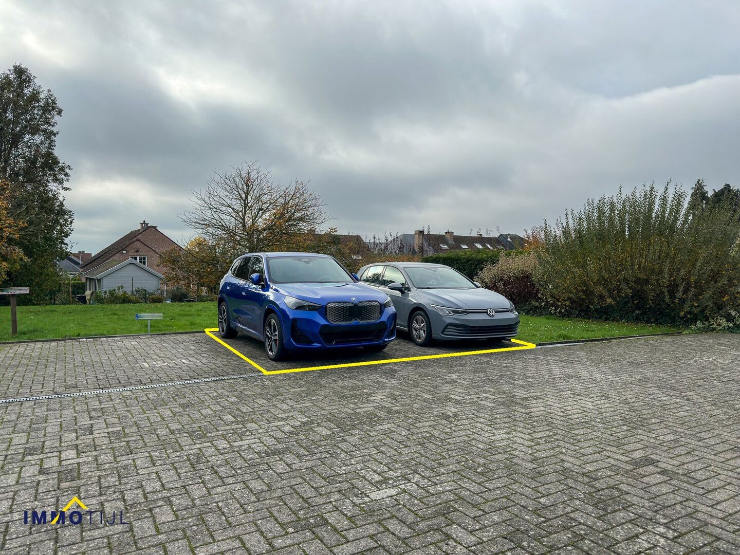 Voor het gebouw zijn zes parkeerplaatsen voorzien in de prijs, handig voor medewerkers en klanten. Achteraan bevinden zich twee bijkomende parkeerplaatsen en drie garages (met automatische poort) die niet inbegrepen zijn in de prijs, maar optioneel kunnen worden aangekocht.