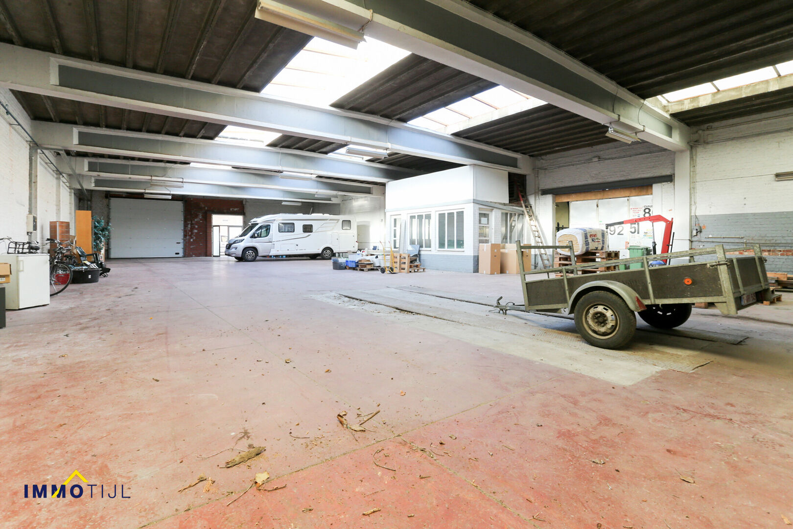 Via de doorrit (breedte 4,6m – hoogte circa 3m) bereikt met het magazijn/werkplaats: De oppervlakte van het magazijn bedraagt circa 750m2 verdeeld in 2 compartimenten.