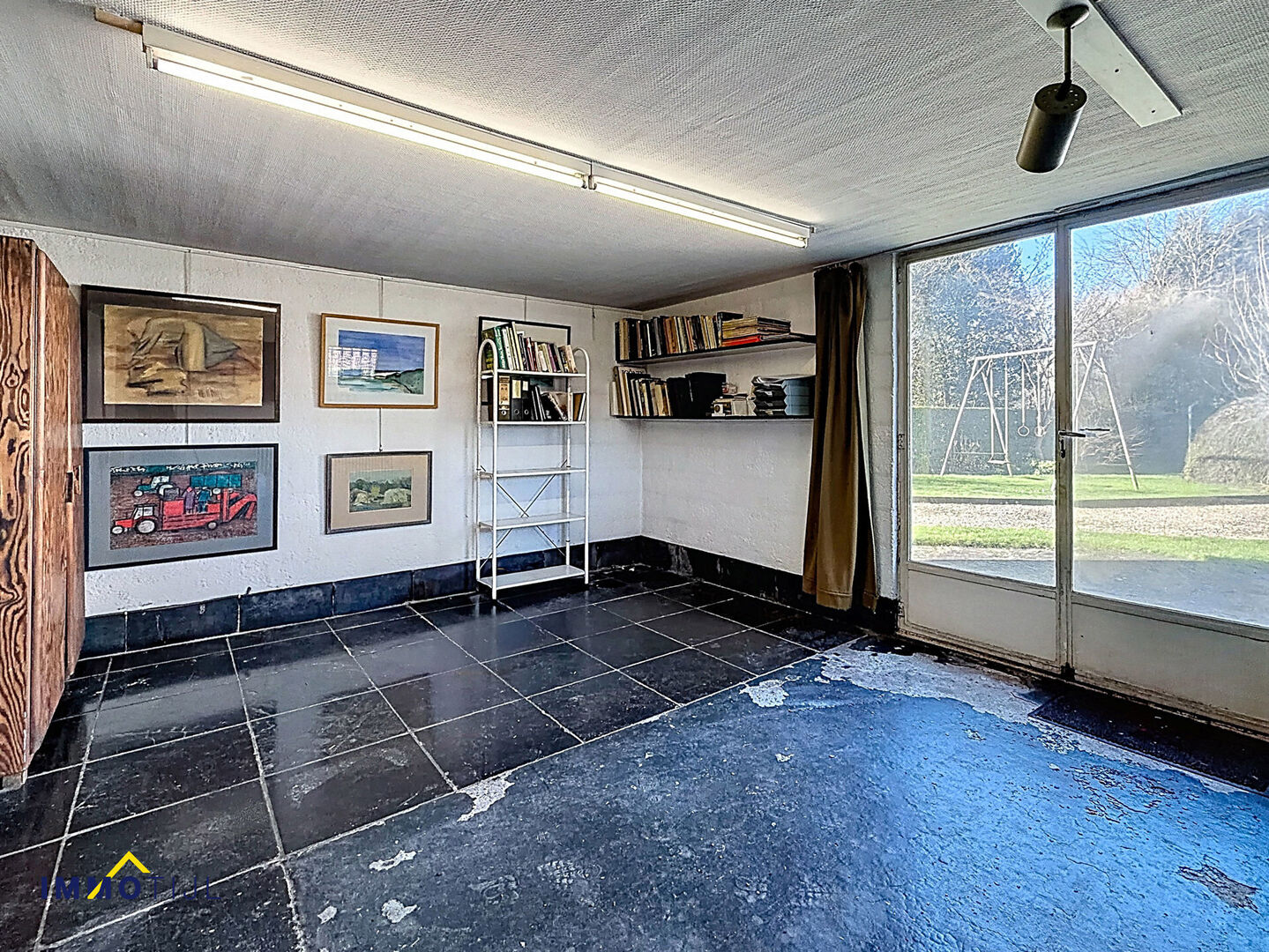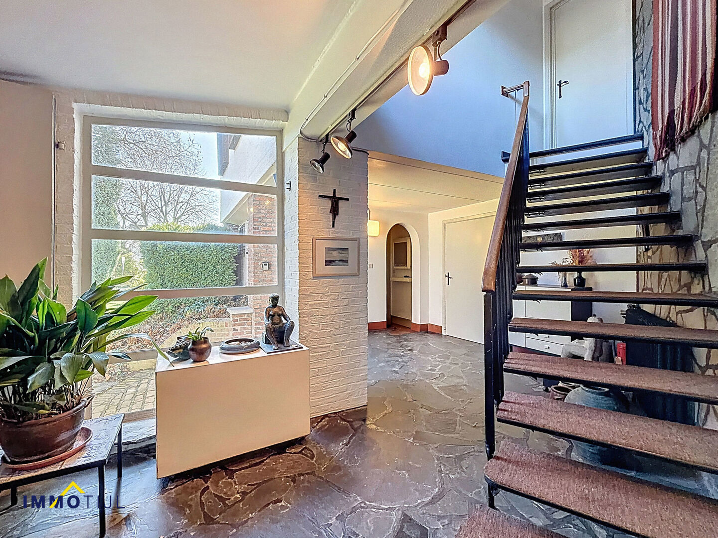 Deze karaktervolle vrijstaande woning beschikt op het gelijkvloers over een imposante inkomhal met vestiaire en gastentoilet, een gezellige woonkamer met eetplaats en een op te knappen keuken. Verder vindt u op het gelijkvloers een aparte bureau en een hobbykamer (inclusief doucheruimte), ideaal voor wie wonen en werken wil combineren of nood heeft aan extra polyvalente ruimte.
