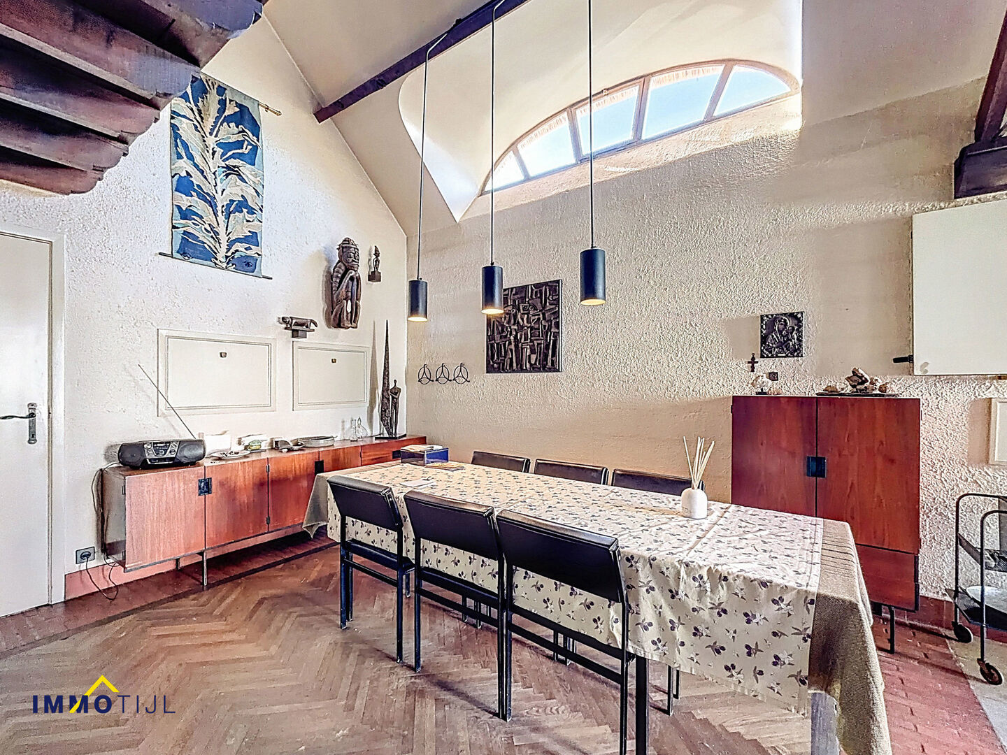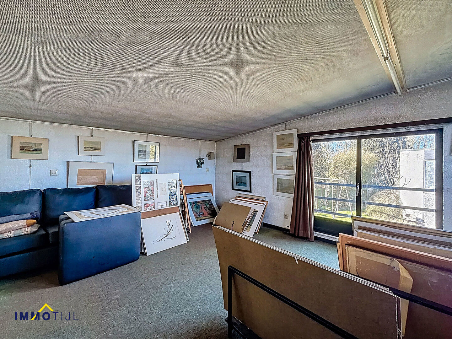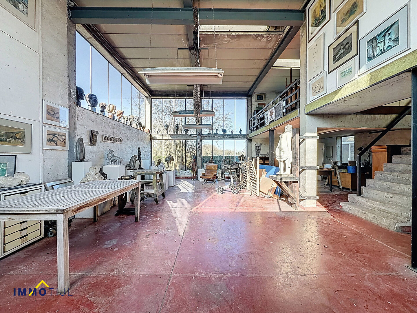 Een absolute troef is het indrukwekkende atelier van ca. 90 m² met overvloedige lichtinval en een bijkomende kamer/bureau op de verdieping. Momenteel ingericht als toonzaal voor kunstvoorwerpen, maar dankzij de oppervlakte is dit een uitzonderlijke ruimte voor uiteenlopende doeleinden: atelier, werkplaats, opslagruimte, garage voor meerdere wagens, showroom, praktijkruimte of vrij beroep. Voor ondernemers, creatievelingen of zelfstandigen biedt dit een zeldzame kans om wonen en werken op één locatie te combineren.