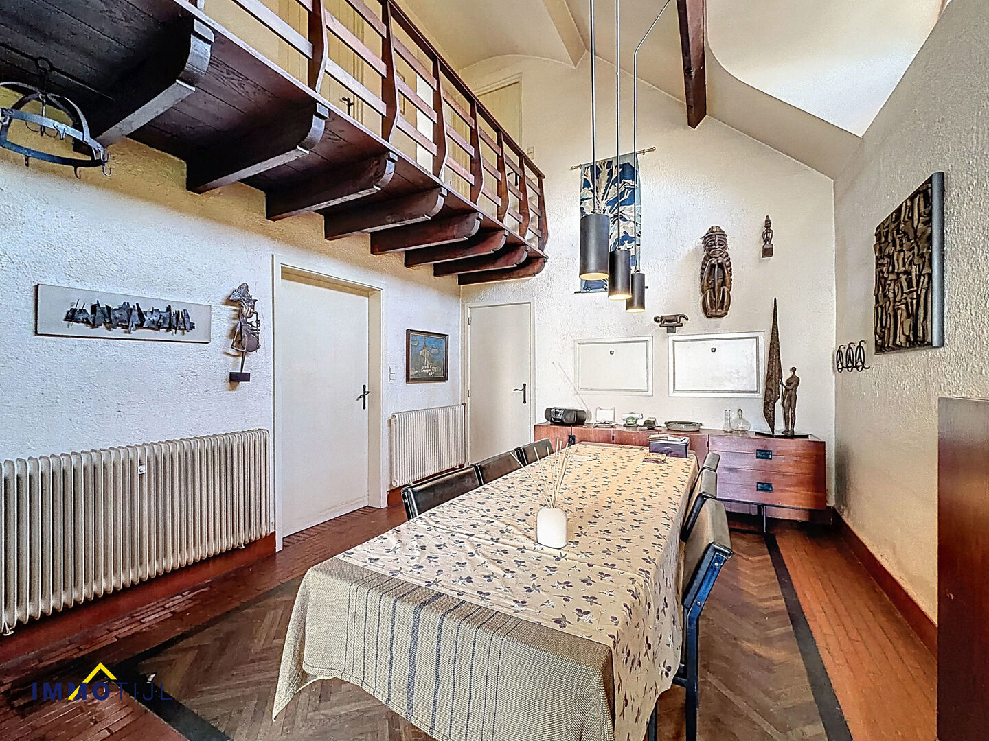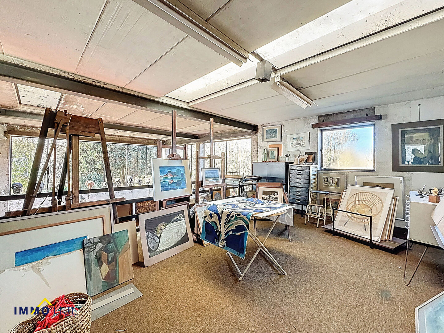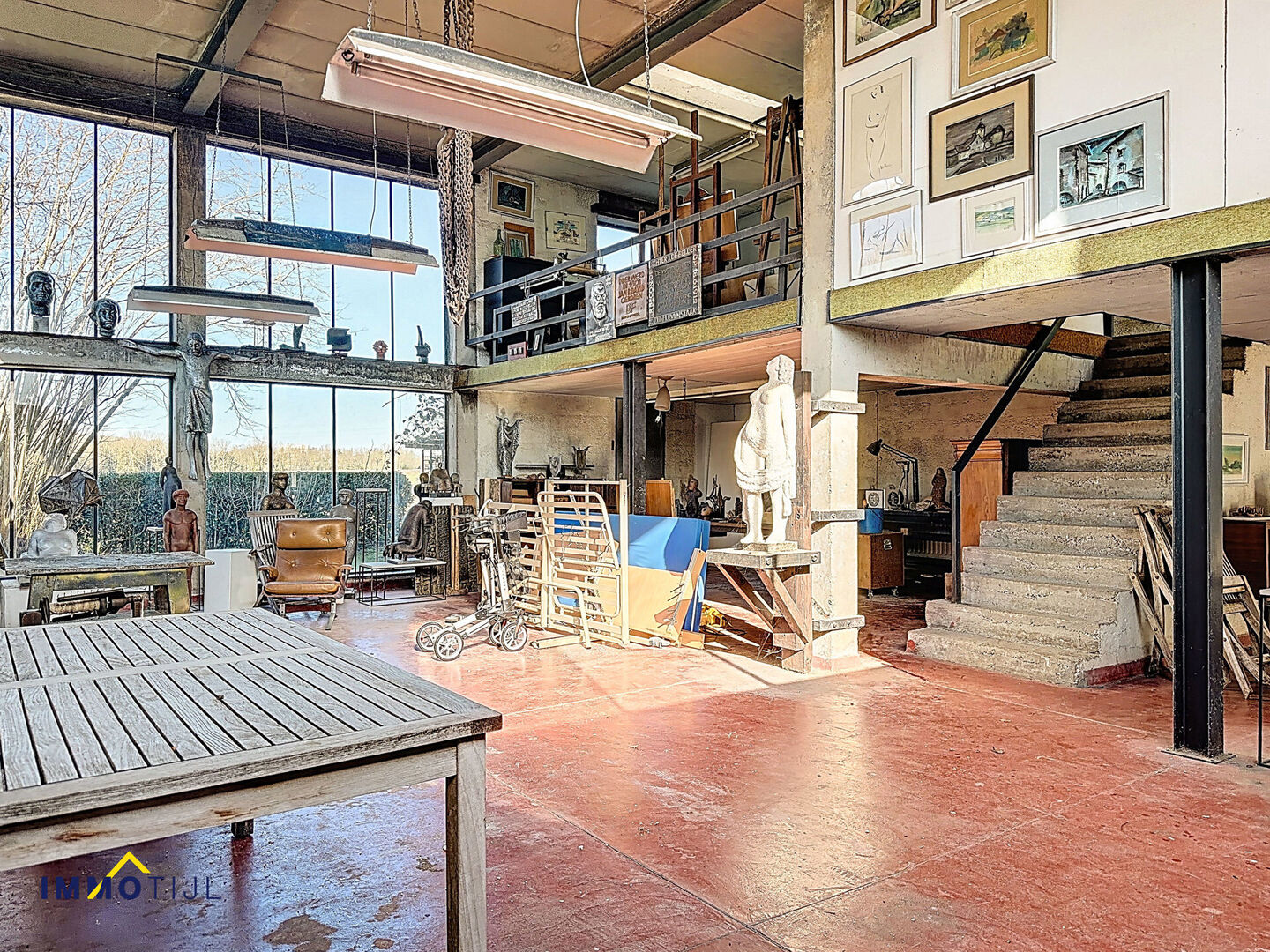 Een absolute troef is het indrukwekkende atelier van ca. 90 m² met overvloedige lichtinval en een bijkomende kamer/bureau op de verdieping. Momenteel ingericht als toonzaal voor kunstvoorwerpen, maar dankzij de oppervlakte is dit een uitzonderlijke ruimte voor uiteenlopende doeleinden: atelier, werkplaats, opslagruimte, garage voor meerdere wagens, showroom, praktijkruimte of vrij beroep. Voor ondernemers, creatievelingen of zelfstandigen biedt dit een zeldzame kans om wonen en werken op één locatie te combineren.