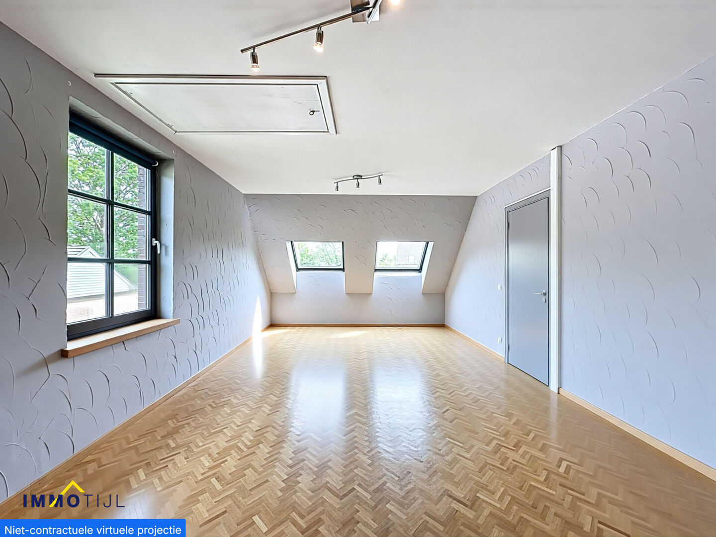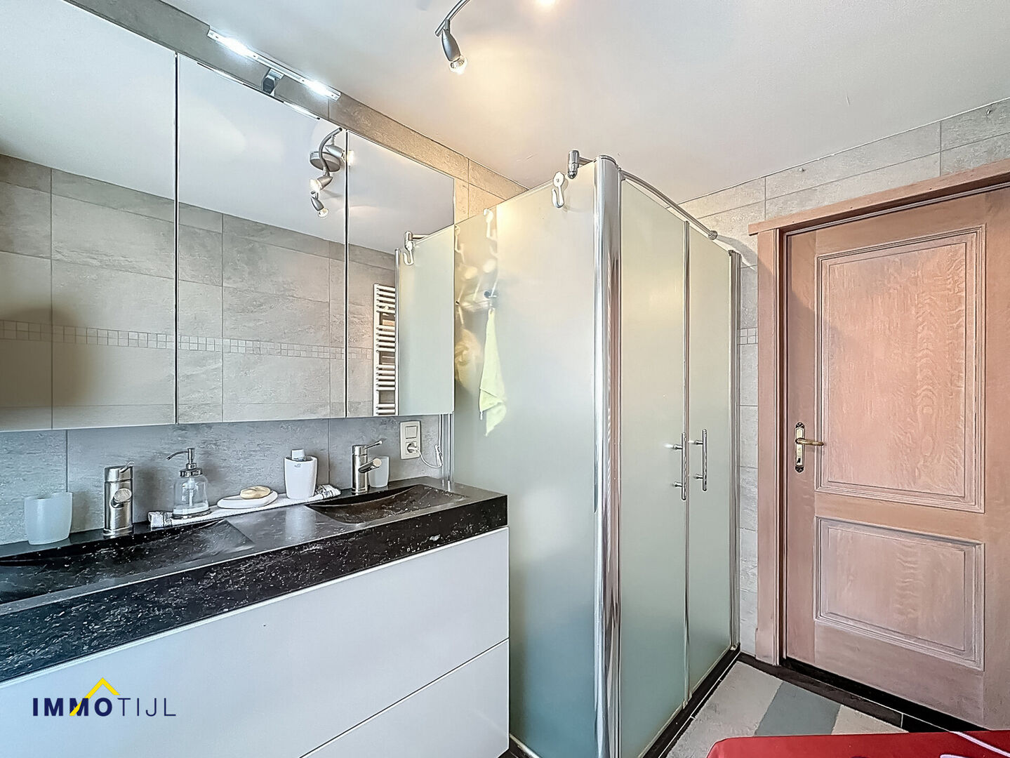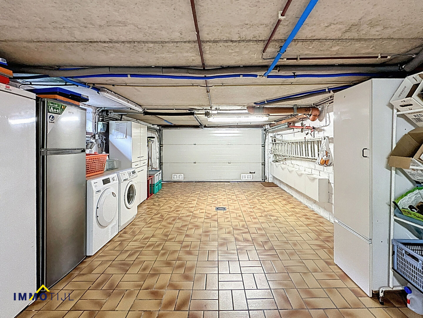 Een extra troef is de brede, inpandige garage met automatische poort en extra opbergruimte. De ruime oprit biedt bovendien voldoende parkeergelegenheid.