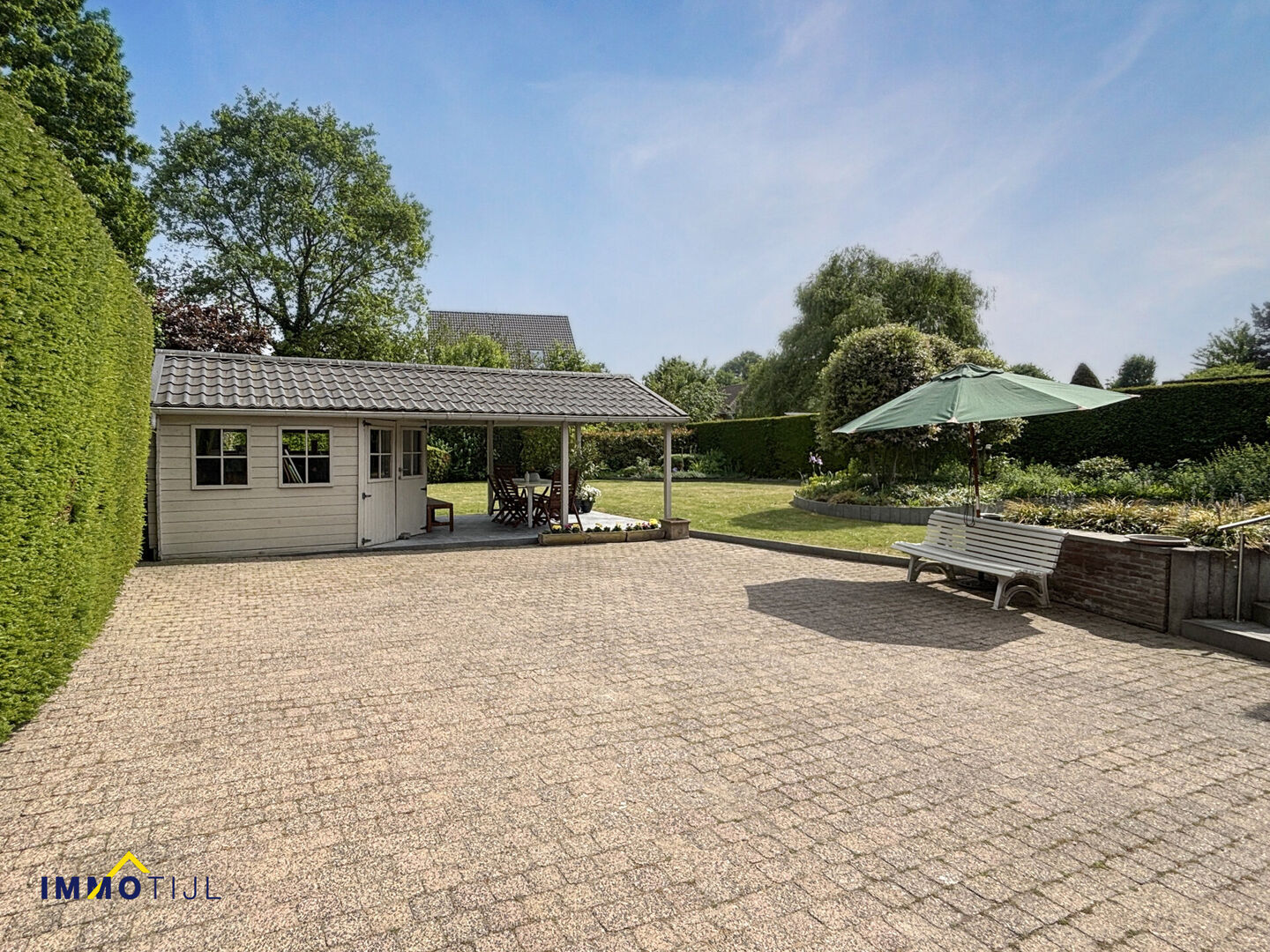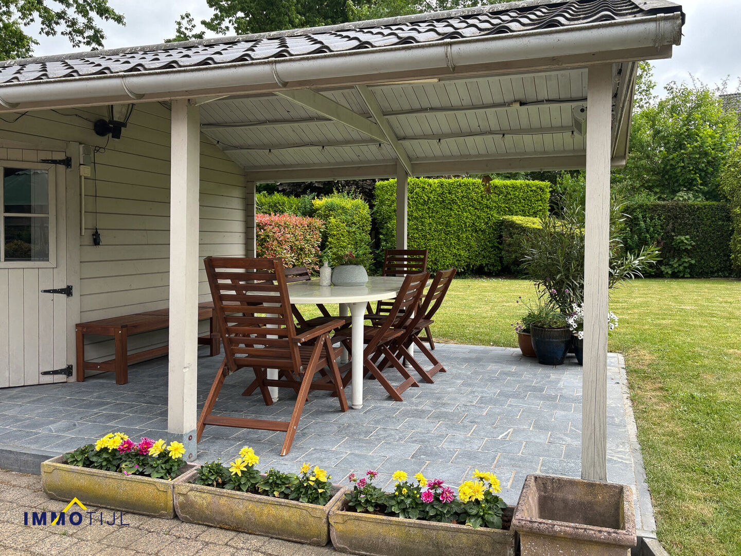 Achteraan bevindt zich de aangelegde, zuidgerichte tuin met overdekt terras, inclusief een praktische tuinberging.