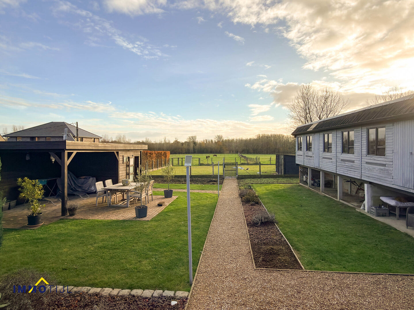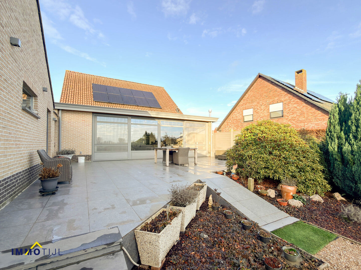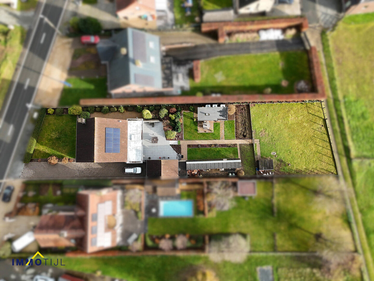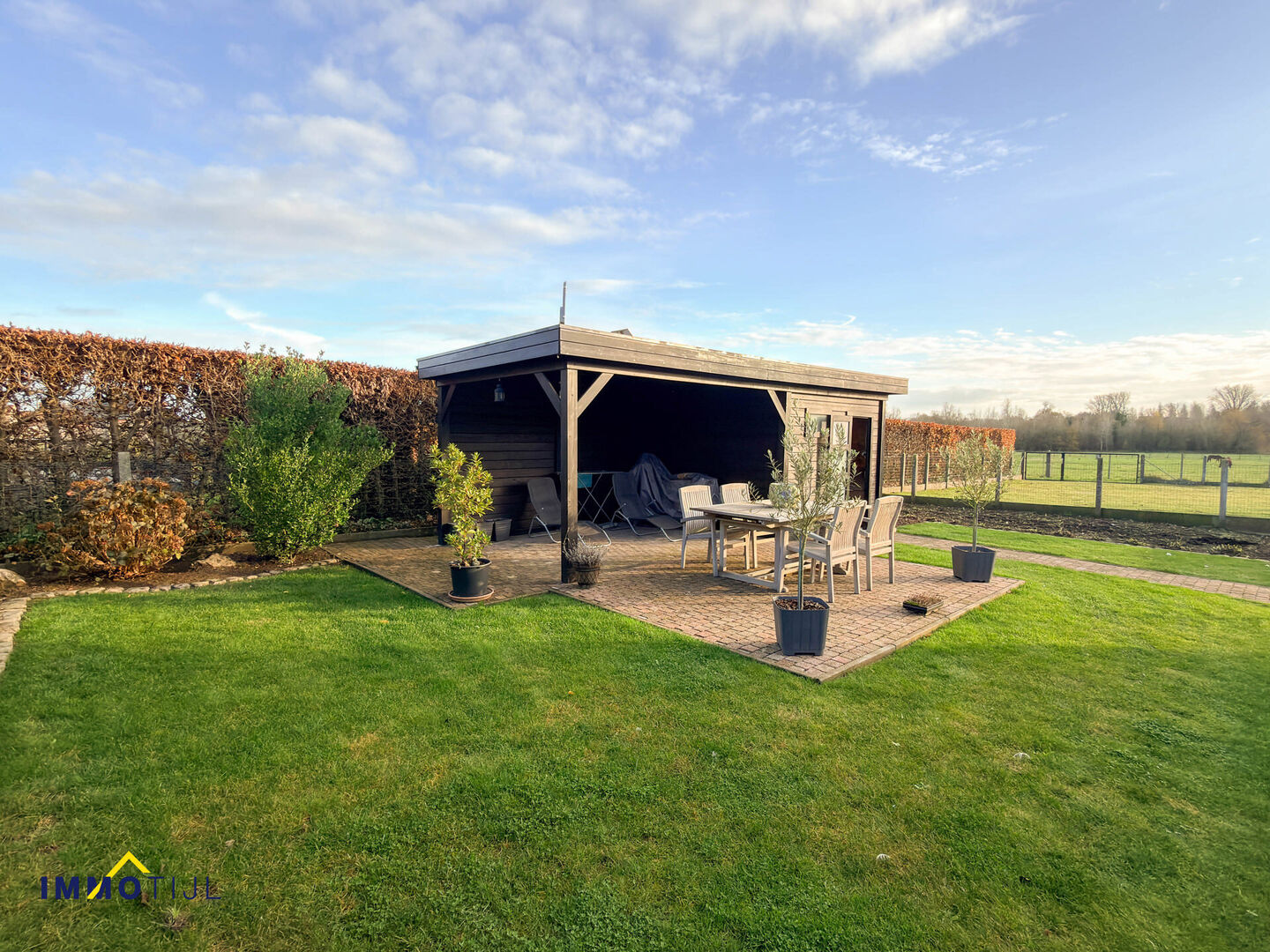Achteraan bevindt zich het breed en zonnig terras met aansluitend de diepe tuin. Men kan genieten van een ideale zuid oriëntatie en een prachtig, landelijk uitzicht. Verder in de tuin is nog een extra terras (deels overdekt) met tuinberging terug te vinden, net als een bijgebouw en een douchekamer. Het perceel is tevens bereikbaar via het achtergelegen weggetje.