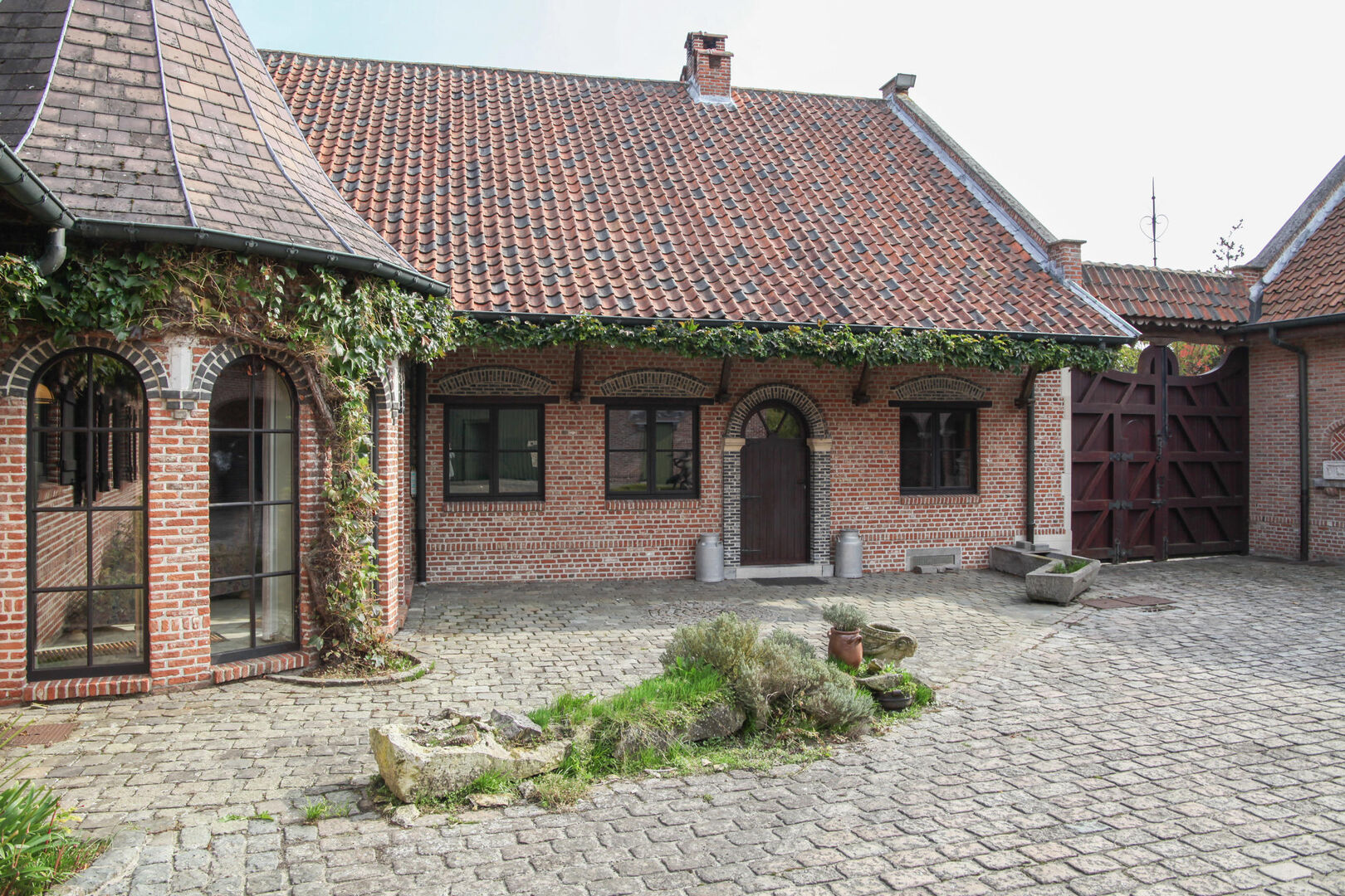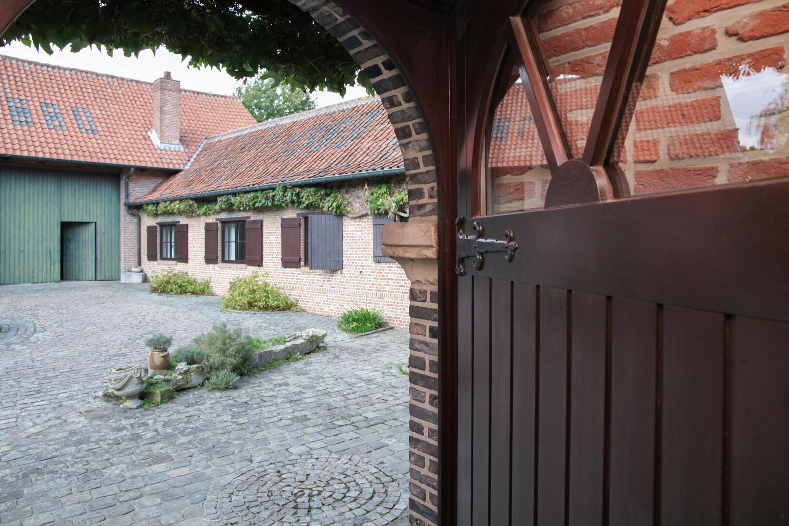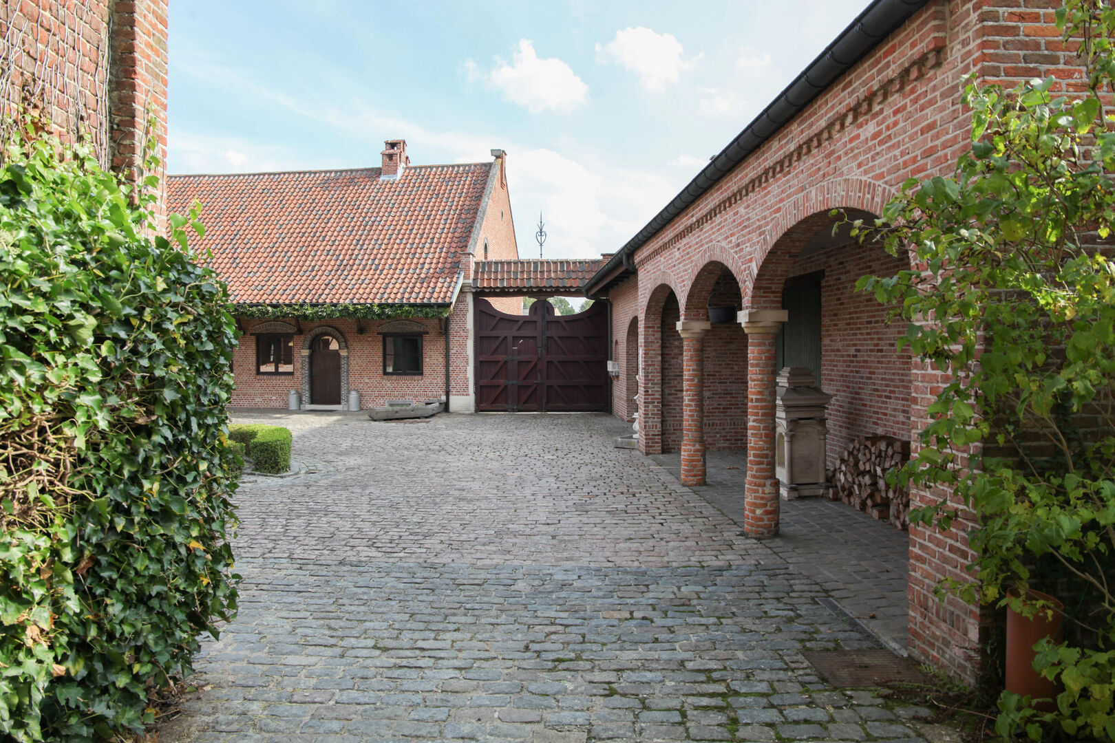 De keuken en woonkamer geven uit op de magnifieke binnenkoer met de daarbijhorende bijgebouwen (een ruime opslagruimte is aanwezig, grote garage die plaats biedt aan meerdere wagens). Deze ruimtes kunnen gebruikt worden voor verschillende doeleinden!