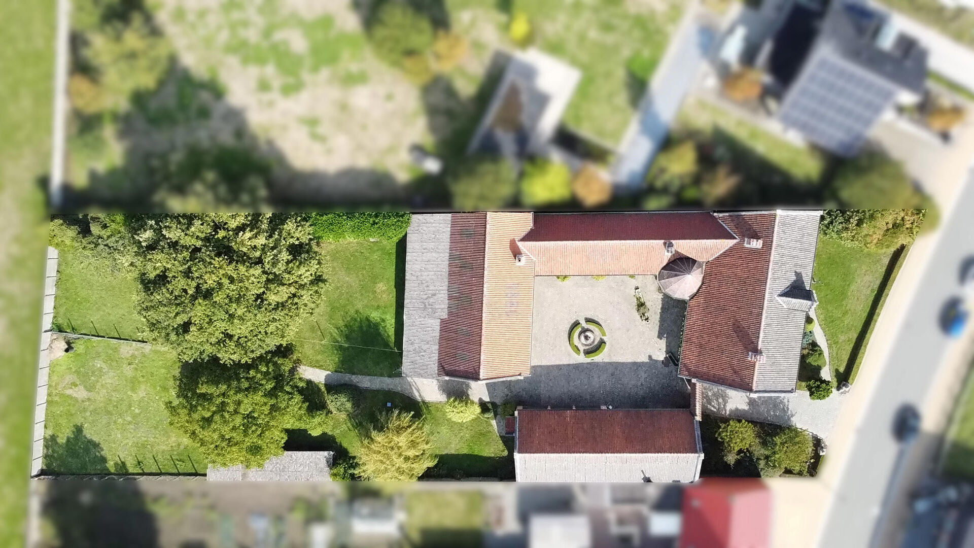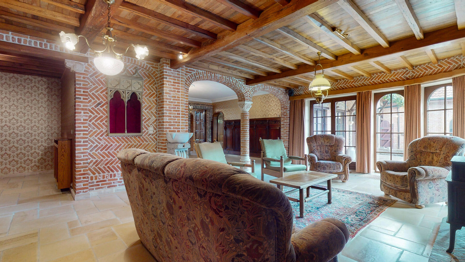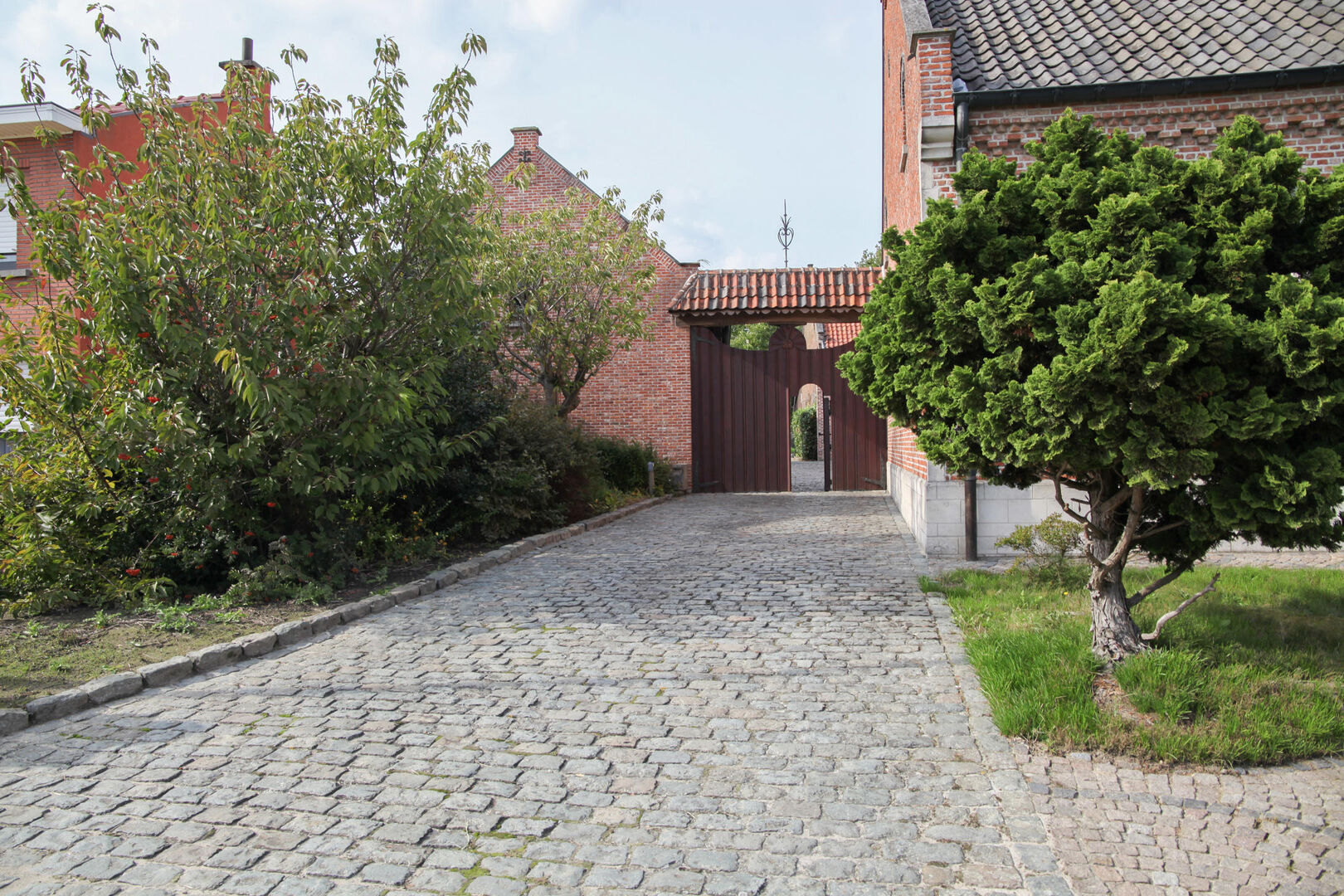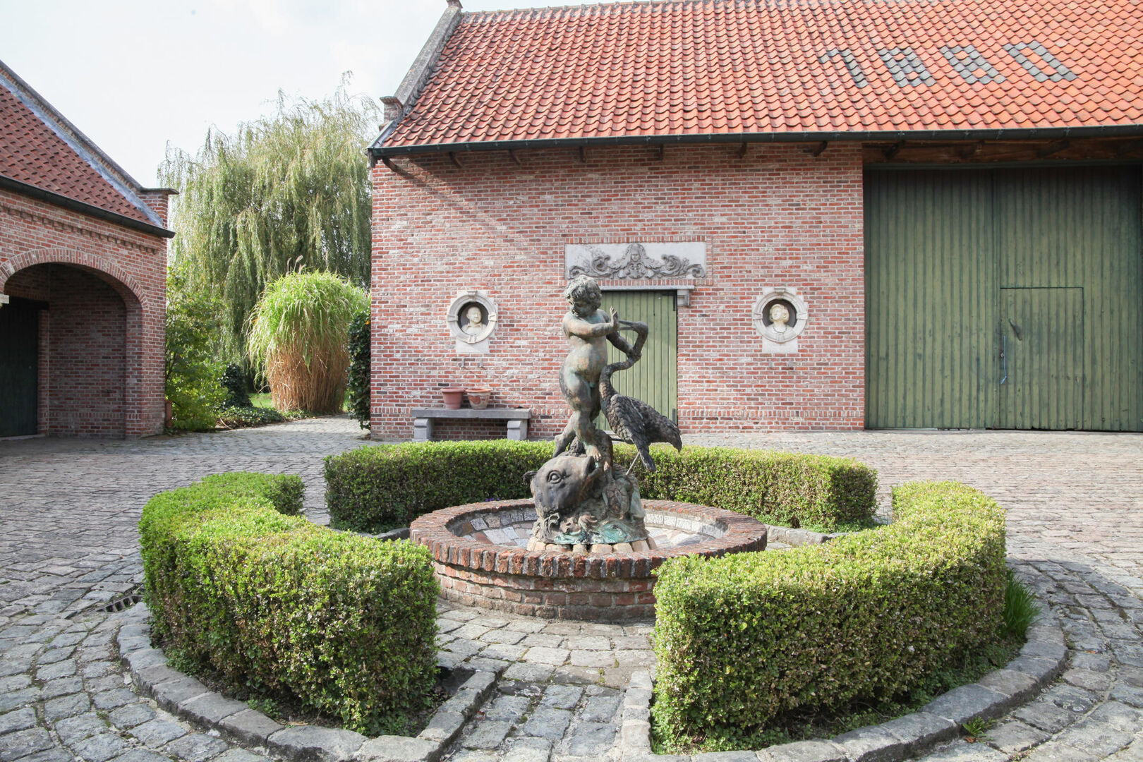 De keuken en woonkamer geven uit op de magnifieke binnenkoer met de daarbijhorende bijgebouwen (een ruime opslagruimte is aanwezig, grote garage die plaats biedt aan meerdere wagens). Deze ruimtes kunnen gebruikt worden voor verschillende doeleinden!
