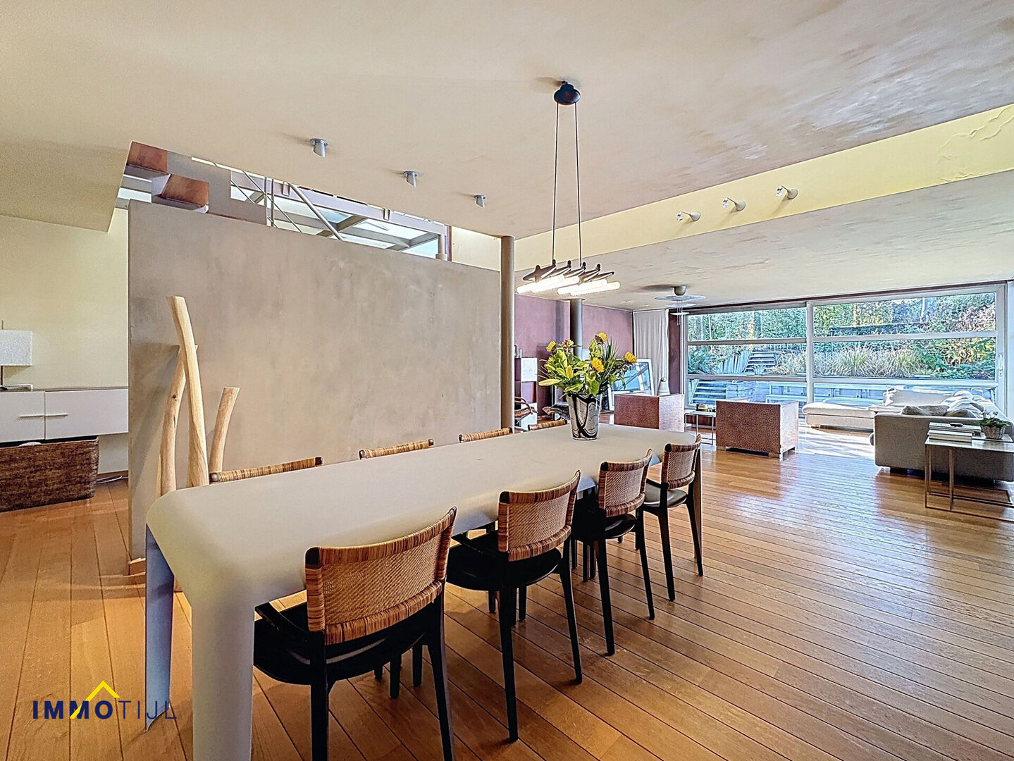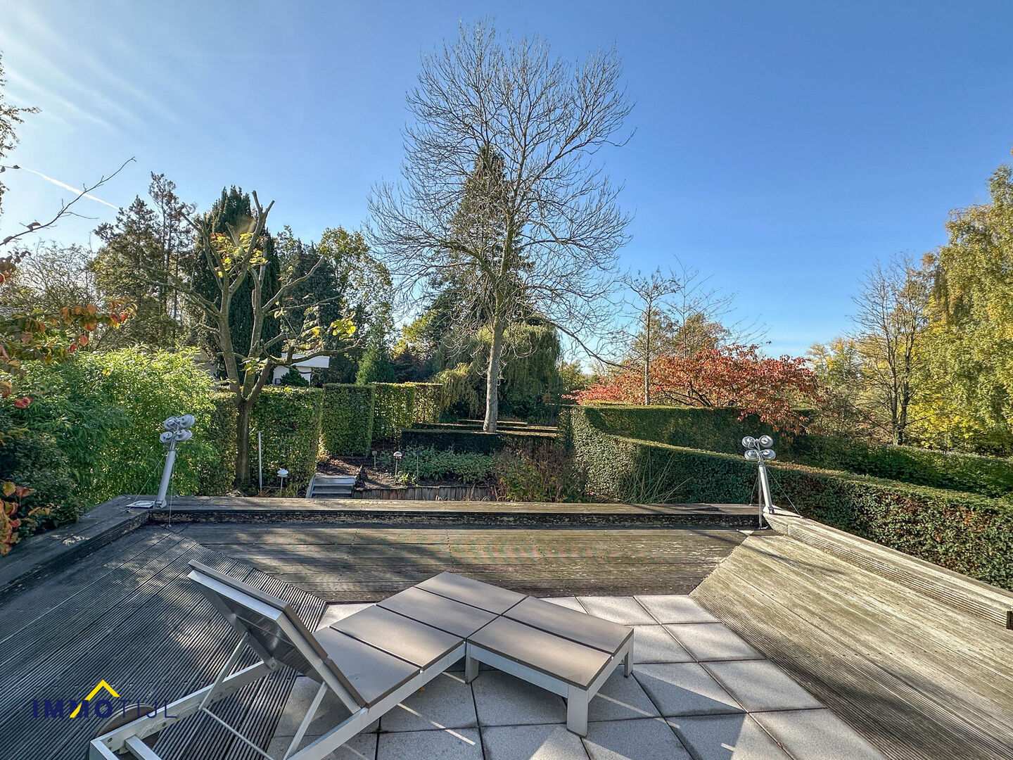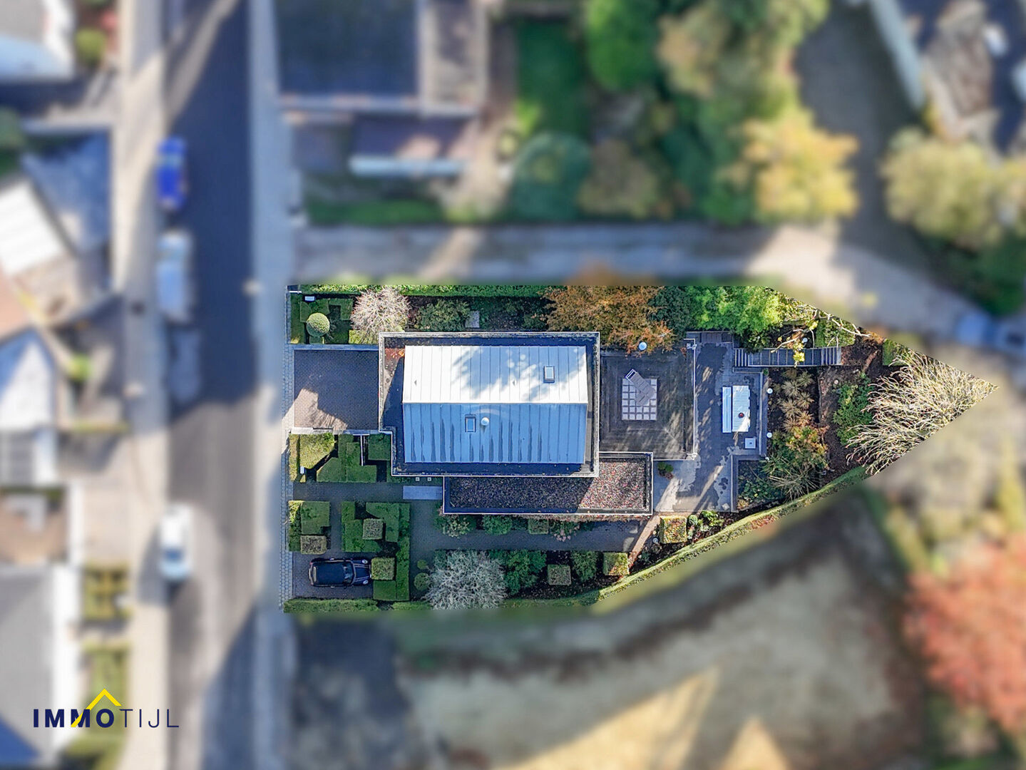 De grote raampartijen zorgen voor overvloedige lichtinval en creëren tegelijk een aangename connectie met de volledig aangelegde tuin - met ideale zuidwest oriëntatie - inclusief terras en siervijver.