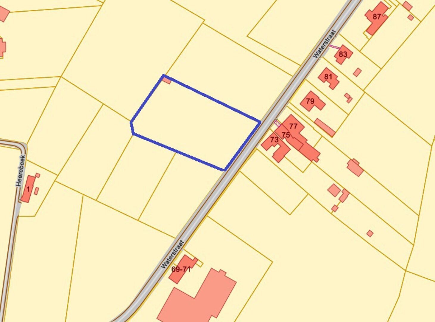 Deze weide heeft een totale oppervlakte van ca. 5.242 m² en bevindt zich in agrarisch gebied. Het perceel is gunstig gelegen, vlot bereikbaar via de Waterstraat, en ideaal geschikt voor het houden van dieren.