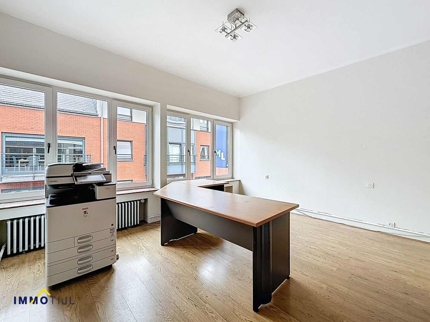 Op de eerste verdieping zijn er meerdere bureauruimtes, vergaderzalen, twee keukens en twee badkamers, en is er directe toegang tot het terras.